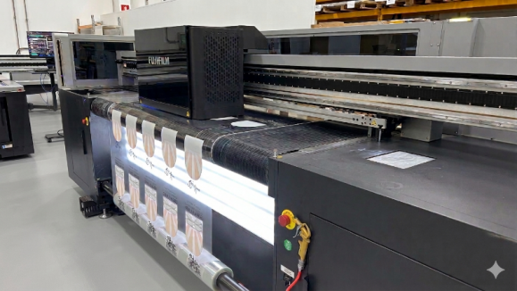 La table numérique permet également d'imprimer en bord à bord, pour éviter des coûts supplémentaires de mise au format ou pour permettre une impression sur pièce déjà découpée.